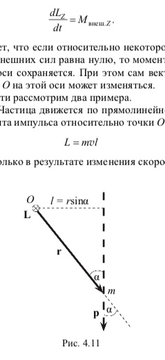 Возможна ситуация, в которой в незамкнутых системах сохраняется не сам момент импульса L, а его проекция LZ на некоторую неподвижную ось Z. Записывая закон изменения момента импульса в проекции на эту ось, получаем