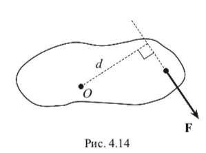 В частном случае, когда сила F, приложенная к телу, перпендикулярна оси вращения Z, момент этой силы относительно оси равен MZ Fd, где F – модуль силы; d – ее плечо относительно оси вращения, которое представляет собой кратчайшее расстояние от оси вращения до линии действия силы (рис. 4.14).