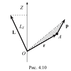 Моментом импульса относительно оси Z называют проекцию на эту ось вектора L, определенного относительно произвольной точки O, лежащей на данной оси (рис. 4.10).
