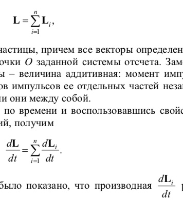 где Mвнутр.i – момент внутренних сил; Mвнеш.i – момент внешних сил, действующих на i-ю частицу. Это приводит к соотношению
