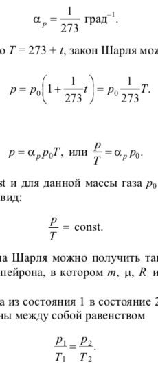 Выражение закона Шарля можно получить также с помощью уравнения Менделеева–Клапейрона, в котором m, , R и V являются постоянными величинами.