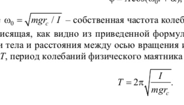 где I – момент инерции маятника относительно оси качания Z. При малых колебаниях маятника (угол φ мал) sinφ ≈ φ, и уравнение принимает вид дифференциального уравнения гармонических колебаний,