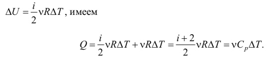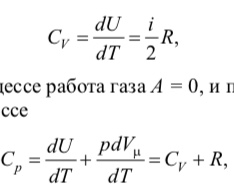 Отметим, что для любых веществ Cp > CV, так как в процессе при постоянном давлении часть подводимой теплоты дополнительно расходуется на совершение работы по расширению тела (газа).
