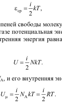 Приведенные формулы справедливы для одноатомного идеального газа. Для многоатомного идеального газа внутренняя энергия зависит еще от одного параметра – числа степеней свободы.