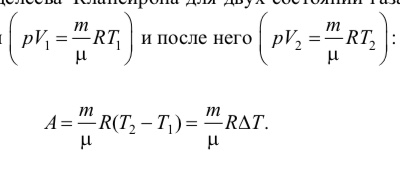 С помощью последней формулы можно установить физический смысл универсальной газовой постоянной R: универсальная газовая постоянная R численно равна работе, которую совершает в изобарном процессе 1 моль идеального газа при повышении его температуры на 1 К.