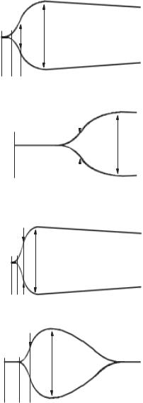 За умов прискореної здатності згущуватися R і К коротшають, mа зростає. За умов уповільнен- ня, навпаки, R і К подовжуються, mа зменшуєть- ся. Укорочення показників R і К на тромбоелас- тограмах свідчить про прискорення першої і дру- гої фаз згортання крові. Підвищення mа свідчить про збільшення концентрації фібриногену. Вели- чина Е характеризує також функціональну ак- тивність тромбоцитів і кількість та якість фіб- риногену. Тромбоеластограми за різних станів представлені на рис. 7.1–7.4: