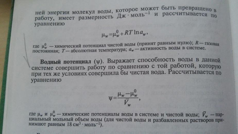 Важным термодинамическим показателем состояния воды в системе является водный потенциал. Это производная величина от двух других термодинамических показателей – активности и химического потенциала воды.