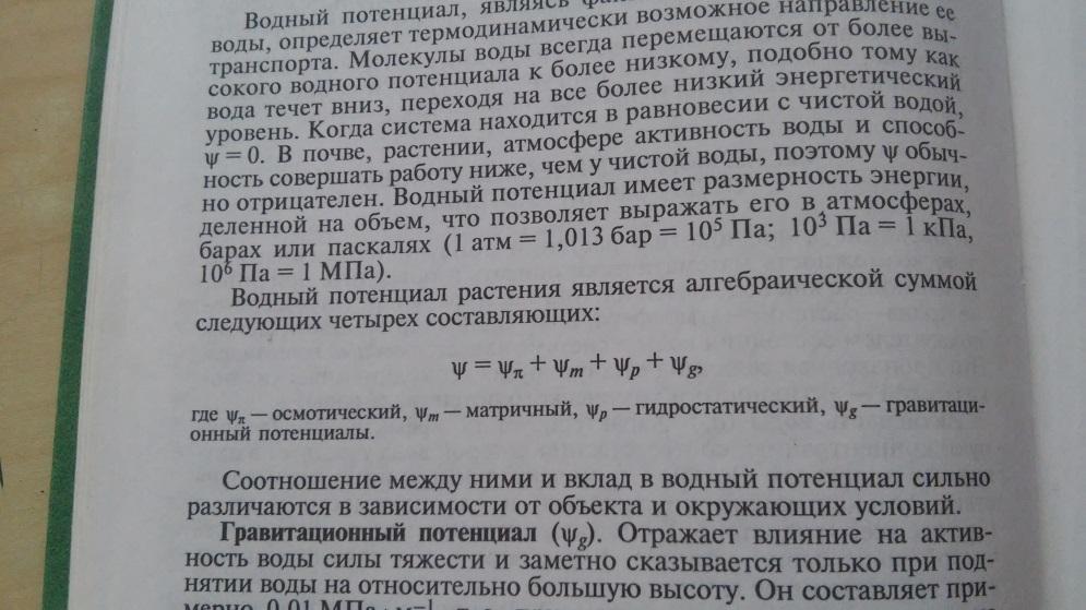 Водный потенциал выражает способность воды в данной системе совершить работу по сравнению с той работой, которую при тех же условиях совершила бы чистая вода.