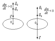 – начальная угловая скорость; знак «+»