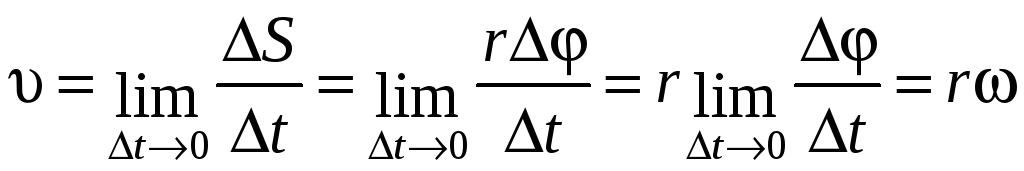 Величина линейной скорости точки (рис. 1.1.1):