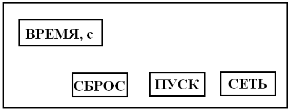 Миллисекундомер физический ФПМ-15 жестко закреплен на основании 1 и предназначен для измерения длительности временных интервалов. На лицевой панели миллисекундомера расположены кнопки СЕТЬ, СБРОС, ПУСК и окно, в котором размещены счетно-индикаторные декады для отсчета времени (рис. 2.2).