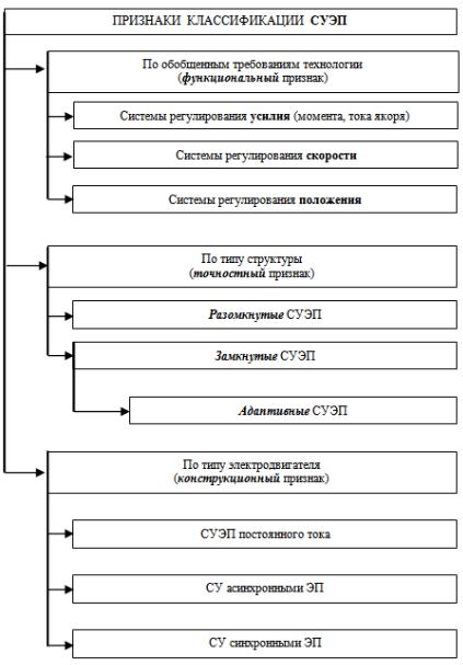 Большое разнообразие СУЭП требует их классификации. Одна из возможных классификаций СУЭП приведена в [3,4]. В ней наиболее важными классификационными признаками считают функциональный, структурный и конструкционный (рис. В.1).
