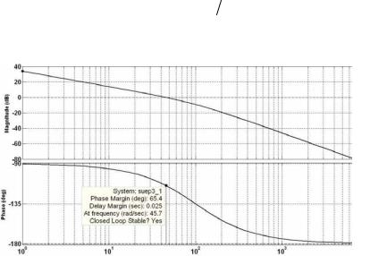 Как видно из рис.5.10 частота среза токового контура равна ωст = 45.7с-1, а запас по фазе на частоте среза составляет 65.40, что также подтверждает устойчивость замкнутого токового контура.