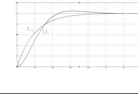 Рис.5.11. Переходные процессы uот=f(t) при скачке задания: кривая 1- токовый контур как колебательное звено; кривая 2 - токовый