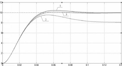 1- без учета влияния ЭДС двигателя; 2- с учетом влияния ЭДС двигателя; 3 – с компенсирующей обратной связью