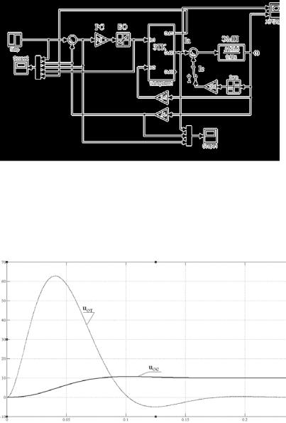 Результаты моделирования контура регулирования скорости при скачкообразном задании максимального напряжения uзсmax =10В в