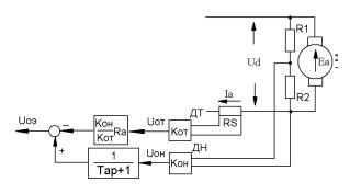 Как видно из выражения (В.1) дл я выделения ЭДС электродвигателя, необходимо иметь информацию о величинах напряжения и тока электродвигателя, которые в системе управления