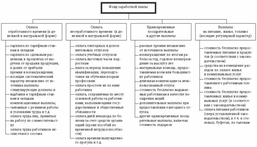 Подробный перечень всех видов выплат входящих в фонд заработной платы определяется соответствующими государственными экономическими структурами (министерство экономики, министерство финансов, статистические организации).