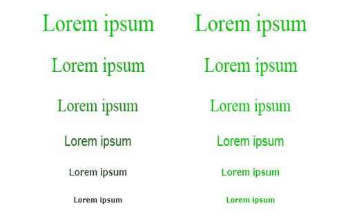 Если стиль сайта подразумевает использование нескольких цветов, то можно их взять, расположить в порядке яркости и применить для заголовков. Разные оттенки одного цвета допустимы. Но если использовать для всех шести заголовков разные по спектру цвета, то содержимое будет слишком пёстро оформлено и это будет мешать. Последний шестой заголовок, является заголовком самого низкого уровня и, в принципе, может даже не отличаться от основного текста ни цветом, ни размером. Можно просто сделать его жирным.