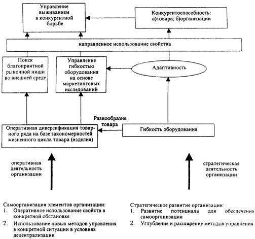 Такое положение усиливает требования к гибкости, адаптивности, инновационности поведения организации. Только тогда организация способна генерировать многообразие товаров, и, главное, форм поведения по отношению к клиенту и на этом строить свою конкурентоспособность.