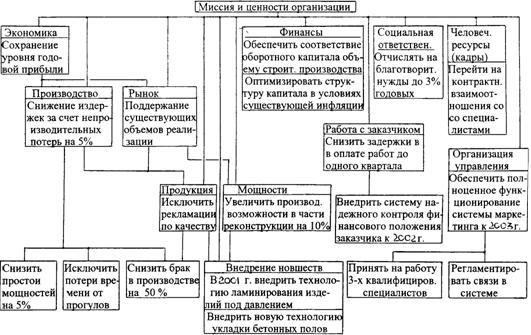 Ценности организации: ориентация на. прибыльность в стратегической перспективе; высокий имидж фирмы, передовые технологии, современные строительные материалы, высокое качество работ; активность, творческий дух руководителей и исполнительского персонала; продуманная организационная структура и четкое взаимодействие всех звеньев управления, направленное на конечные результаты; удовлетворенность персонала работой, условиями ее выполнения, оплатой труда; хорошие человеческие отношения в трудовом коллективе, высокий уровень квалификации рабочих и ИТР, высокая исполнительская и трудовая дисциплина, низкая текучесть кадров