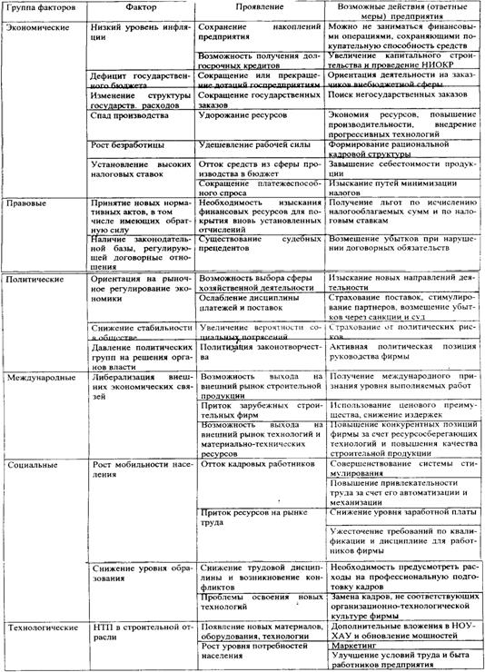Выводы из анализа внешней среды фирмы представлены в табл. 3.1.