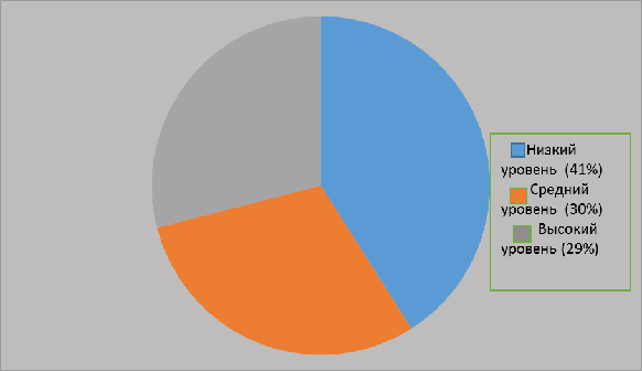 Таким образом, среди опрошенных подростков можно выделить три группы по уровню сформированности гражданских чувств и обладанию соответствующими знаниями: низкий (41 %), средний (30 %) и высокий (29 %).