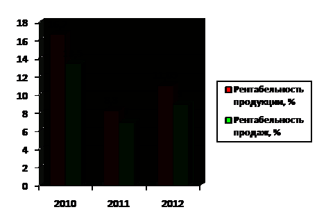 Таблица 2.3 - Динамика показателей рентабельности продукции и рентабельности продаж ИП «Zepter Интернационал» ООО за 2010-2012 гг.
