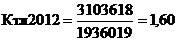 Из данных таблицы видно, что абсолютное значение прибыли за 2012 год составило 177304 млн. руб., что на 107556 млн. руб. больше, чем за соответствующий период 2011 года. Основная доля прибыли приходится от реализации товаров, продукции, работ, услуг. В отчетном периоде она составила 309150 млн. руб., что на 122547 млн. руб. или на 65,6% больше, чем в 2011 году. В результате за вычетом всех налогов чистая прибыль предприятия в 2012 году составила 177304 млн. руб., что на 154,2 % больше соответственно 2011 года.