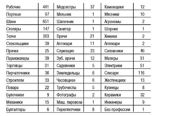 По профессии заключённые делятся следующим