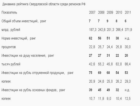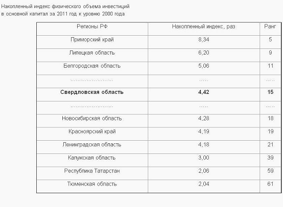Свердловской области с точки зрения инвестиционных вложений: область поднялась