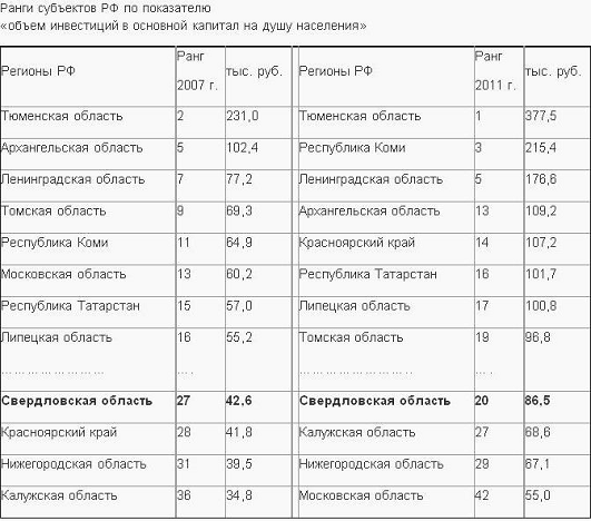 рублей. По этому показателю Свердловская область стабильно входит в десятку