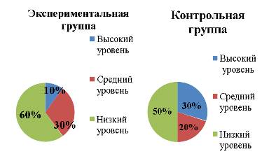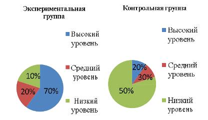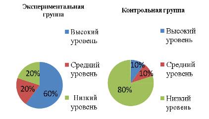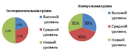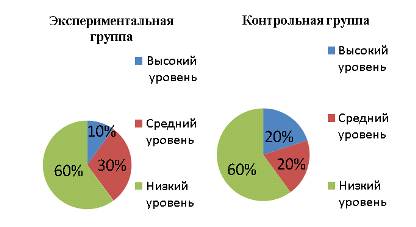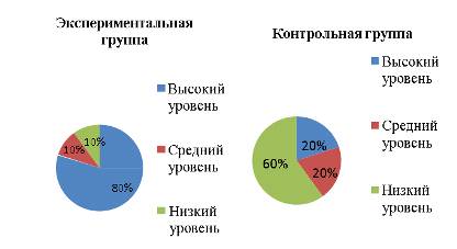 Мы представили результаты констатирующего эксперимента в виде трех уровней сформированности навыков социального поведения детей экспериментальной и контрольной группы.