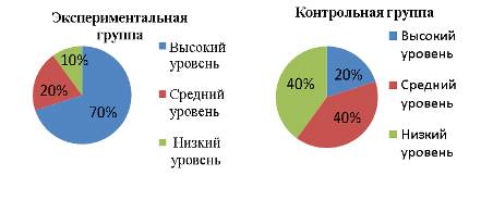 На основании выделенных показателей ЭГ и КГ детей можно было распределить по уровням сформированности навыков социального поведения.