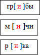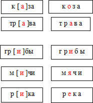 - В каких ещё словах слышатся похожие безударные гласные звуки? (дети называют слова грибы, мячи, река и поясняют: в этих словах слышим звук [и]).