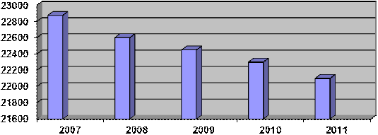 период с 2007 по 2011 гг. имеет тенденцию к снижению (ежегодно на 0,8-0,9 тыс.