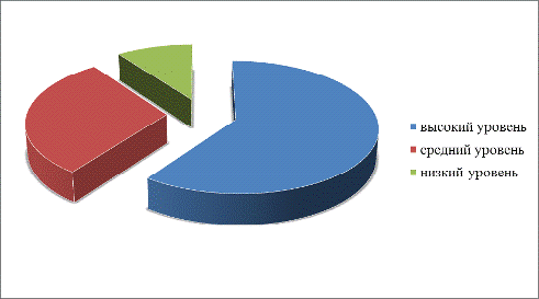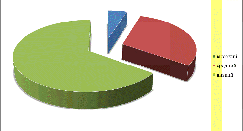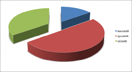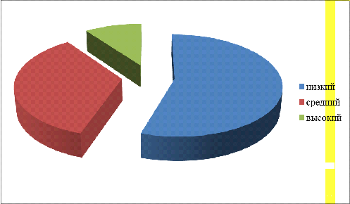 Согласно данным, представленным на рисунке 2.1, большинство респондентов, составляющих 55% имеют низкий уровень развития познавательной сферы.