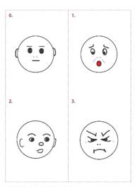 Методика № 1 «Ориентировка в эмоциях и группировка». В первой части первого этапа констатирующего эксперимента детям из основной и сравнительной групп предъявлялось 9 пронумерованных карточек с изображением эмоций людей в виде пиктограмм (0 - спокойствие, 1 - страх, 2