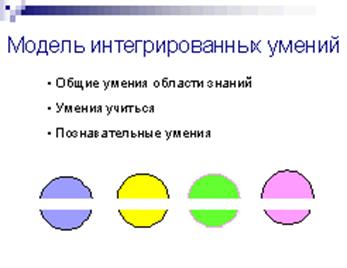 Общими для всех предметов являются умения учиться и познавательные умения как технология в рамках умений учиться. Выделение умений учиться, как интегрированных может существенно решить проблемы содержания, так как данные умения позволяют впредь самостоятельно добывать новые знания.