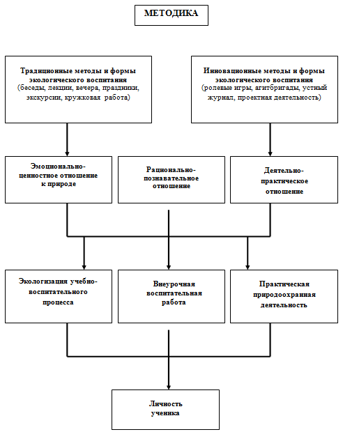 Различение отдельных методов экологического воспитания имеет важное значение для понимания и организации различных видов деятельности учащихся. Однако это не означает, что в реальном учебном процессе эти методы необходимо отделять друг от друга. Наоборот, их целесообразно реализовывать в сочетании, параллельно друг другу.