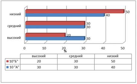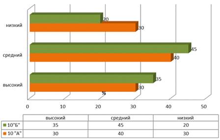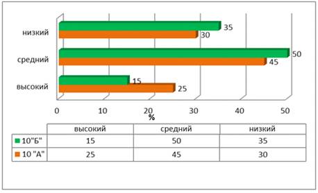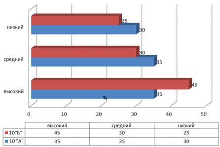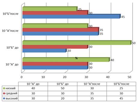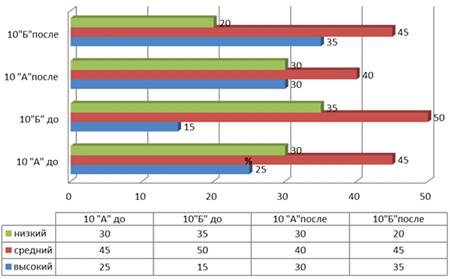 классов. Контрольной группой выбраны учащиеся 10 "А" класса, а