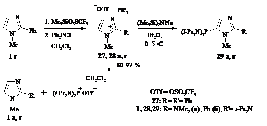 изомеризуются в 2-фосфорилированные имидазолы, что подтверждает «карбеновый»