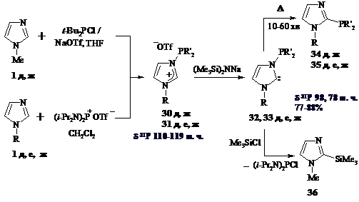 N(3)-фосфиноимидазолий бромидов (трифлатов) с основаниями. При наличии