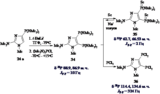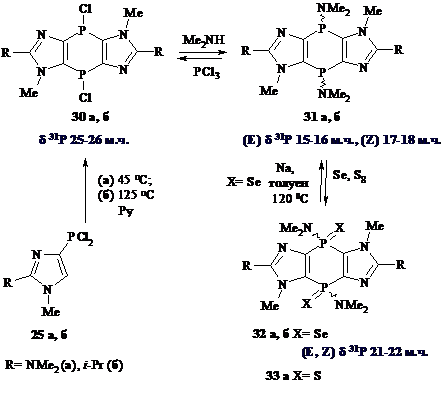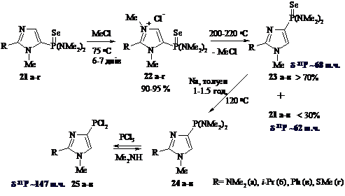 участием этого положения. Так, 4-дихлорфосфиноимидазолы при нагревании