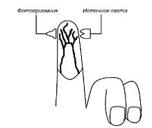 Фотоплетизмография - метод исследования периферической гемодинамики, основанный на изучении поглощения света, проходящего через исследуемый участок ткани с пульсирующей кровью. Используется в мониторах пациента для определения ЧСС, величины интенсивности пульсации кровотока, а также в пульсоксиметрах [1].