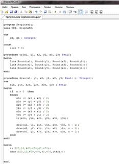 Вот наш конечный код написание нашей программы треугольника Серпинского в