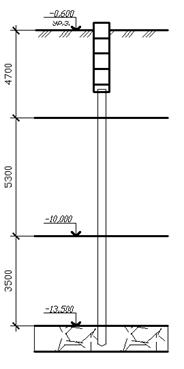 концом на глубину 10 м и более с последующим устройством в нижнем конце свай