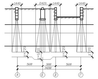 оси Б (под колонны)