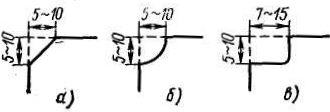 Прессование металлов, широко используемое в автомобильной и других отраслях промышленности, требует применения разнообразных штампов (рисунок 13.3.8). Перед их наплавкой выполняют разделку поверхности по одной из форм, показанных на рисунке 13.3.9. Разделка по форме а отличается простотой выполнения, а по форме в обеспечивает гарантированный уровень свойств наплавленного металла.