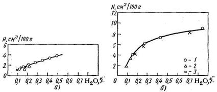 диффузионного водорода Н в наплавленном металле от содержания влаги Н2О